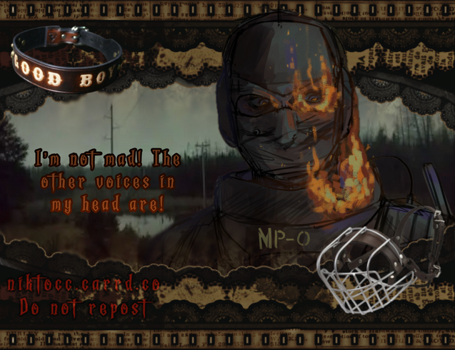 Nikto, Leatherface, Konig, Ghost, Lady Dimitrescu, Captain Price, Soap, Gaz, Roach, Valeria, Frank Woods, Spider punk, Michael Myers, Fnaf rabbits, Lefty, DJ, Glamrock freddy, Monty, Vanessa, Roxy, Eyeless Jack, Ticci Toby, LJ, Slenderman, Huggy Wuggy, Frankie, Shadow rat, 404.